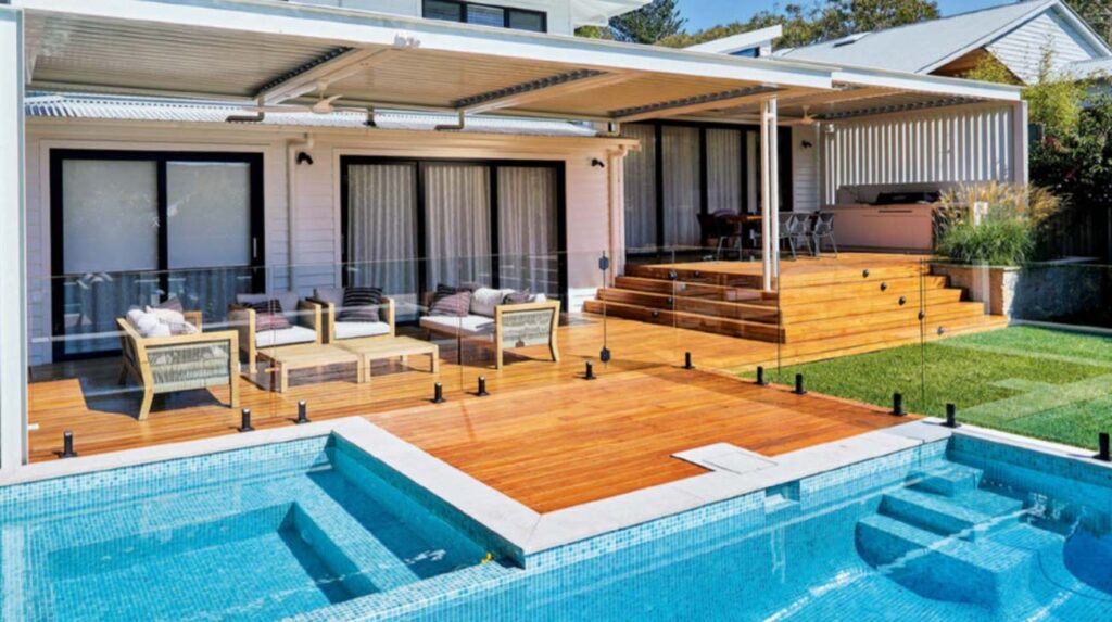 Una soluzione popolare, per questo, sono le coperture in legno, ideali anche per creare un collegamento estetico tra la piscina e la casa. Scegli legni robusti come il cedro, il teak o l’ipe, ma considera la necessità di manutenzione periodica.